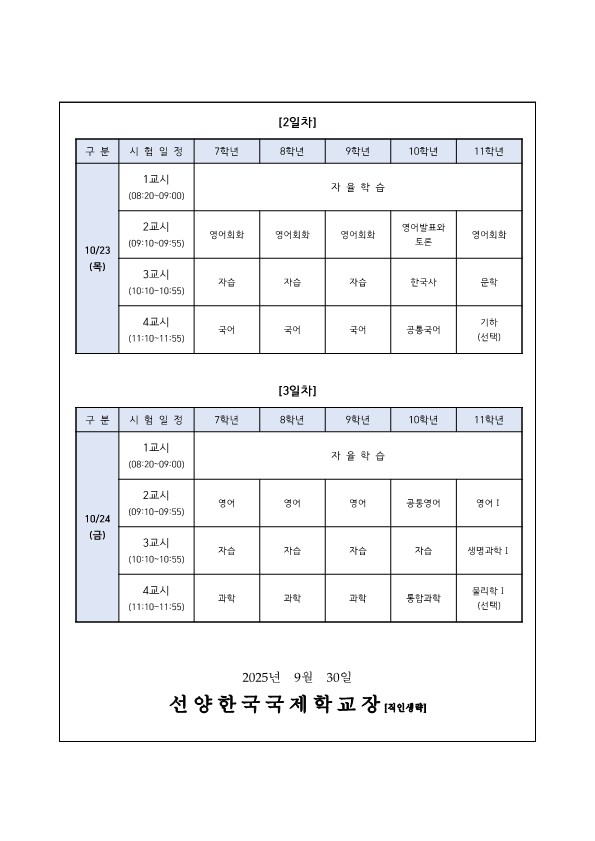 ÀÌÀü±Û | [Ãʵî-°¡Á¤Åë½Å¹®] 2025Çг⵵ 2Çбâ Áß°£°í»ç(1-6Çгâ) ¾È³» | ³²¼ö¸° | 2025-09-30 | 211 |