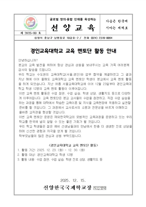 | [Ãʵî] °æÀα³À°´ëÇб³ ±³À° ¸àÅä´Ü Ȱµ¿ ¾È³» | |