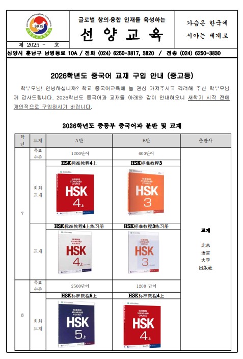 | [Áßµî-°¡Á¤Åë½Å¹®] 2026Çг⵵ Áßµî Áß±¹¾î ±³Àç ¾È³» | |