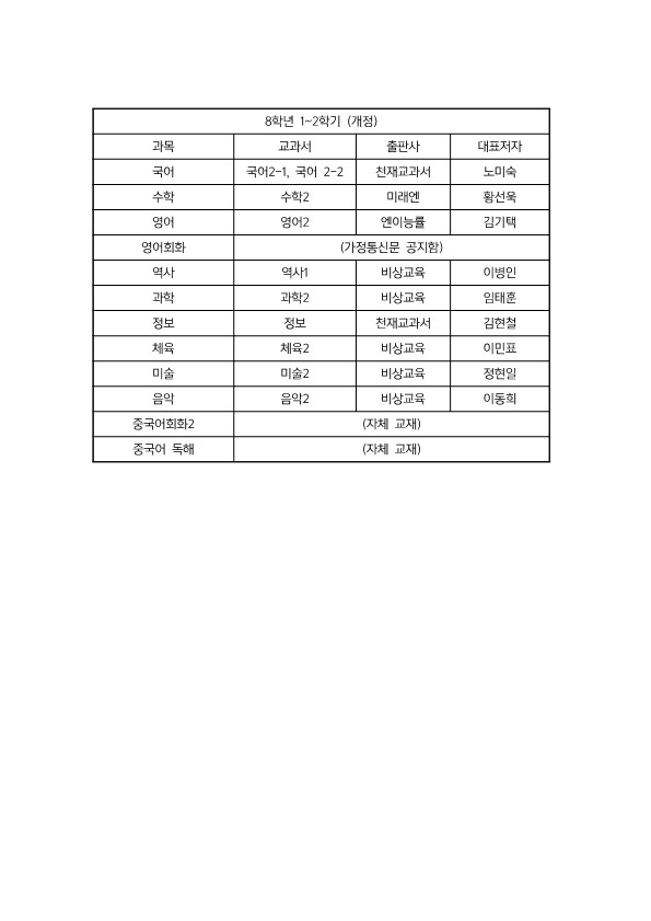 | ÀÌÀü±Û | [Ãʵî-°¡Á¤Åë½Å¹®] 2026Çг⵵ ÃÊµî ¿µ¾î, Áß±¹¾î ±³Àç ¾È³» | À忬ÁÖ | 2026-01-05 | 46 |