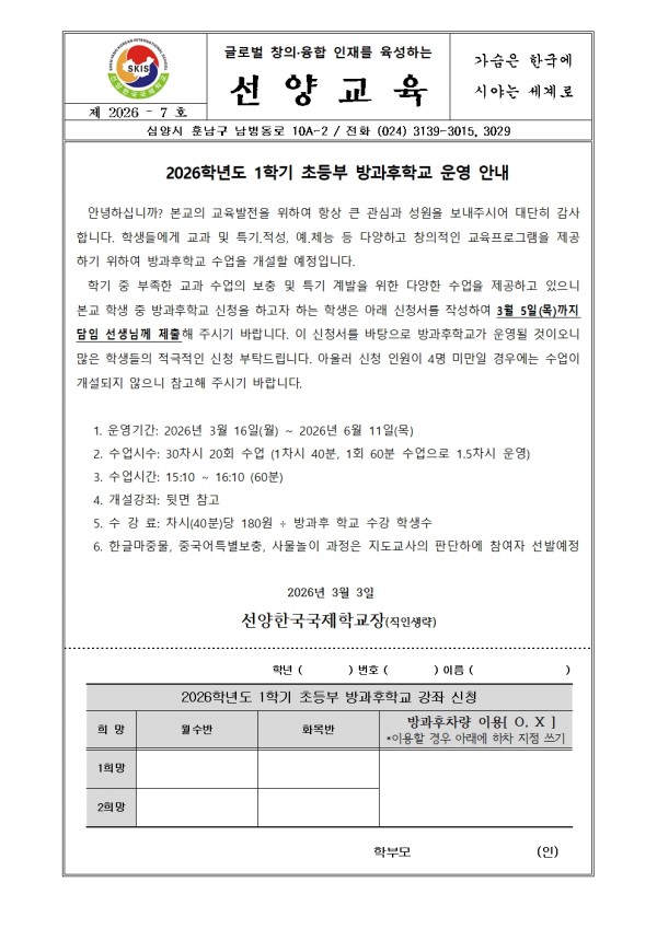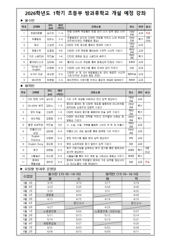 | [Ãʵî] 2026Çг⵵ 1Çб⠹æ°úÈÄÇб³ ¿î¿µ ¾È³» | |
