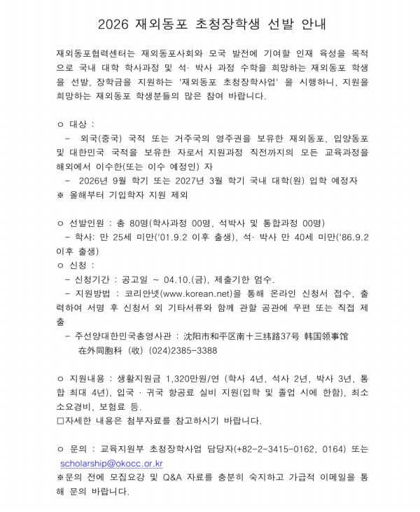 | 2026 Àç¿Üµ¿Æ÷ ÃÊûÀåÇлý ¼±¹ß ¾È³» | |