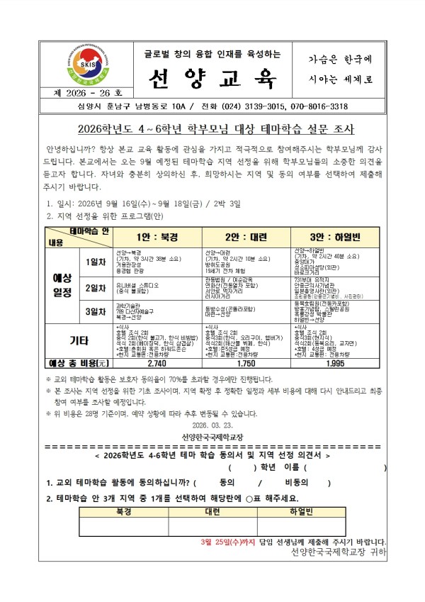 | [Ãʵî] 2026Çг⵵ 4~6Çгâ Çкθð´Ô ´ë»ó Å׸¶ÇнÀ ¼³¹® Á¶»ç | |